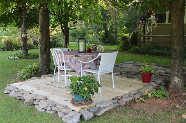 It doesn't overlook our pond, but it is a nice place to sit in the back of the house. The project was on my list of things to try this Summer.